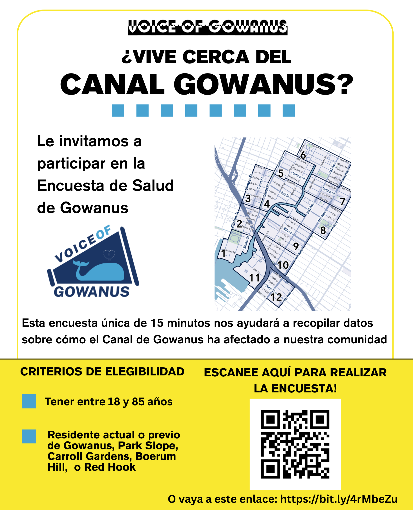 Al abordar la necesidad de la Encuesta de Salud, la Dra. Zelikoff dijo: "Los habitantes de Gowanus deben quedarse al tanto y alzar sus voces para proteger su salud y la de sus hijos".
